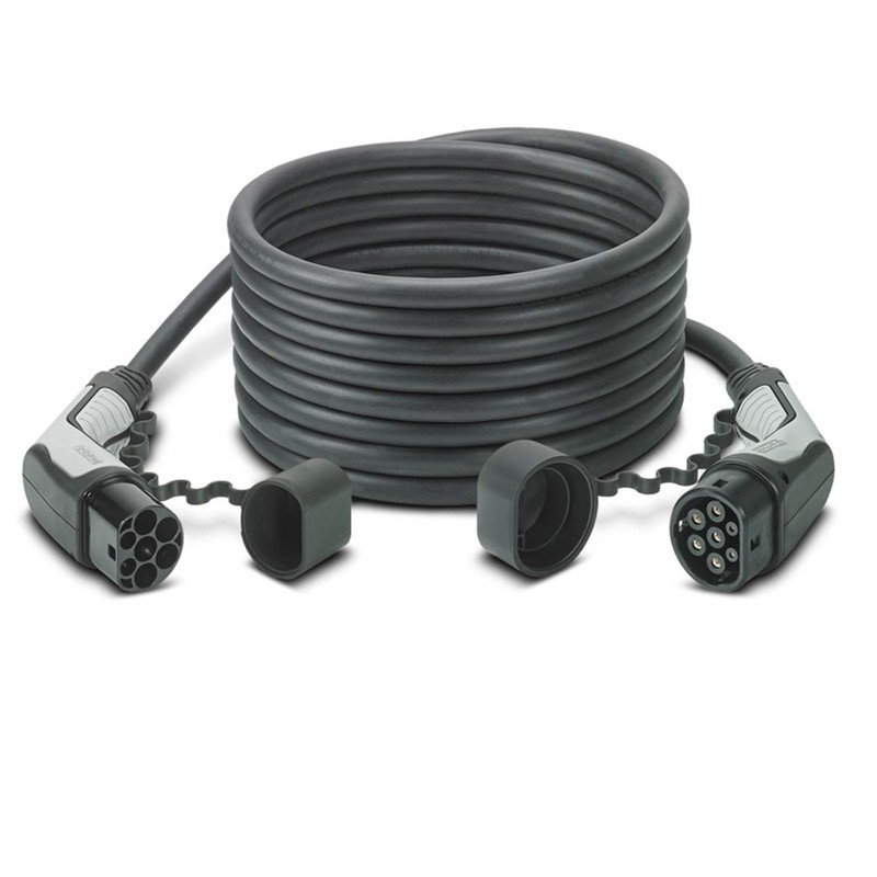Трифазен кабел Phoenix Contact за зареждане с мощност до 22 kW. Кабелът разполага с мъжки и женски конектор Тип 2 за зареждане от AC зарядни станции
